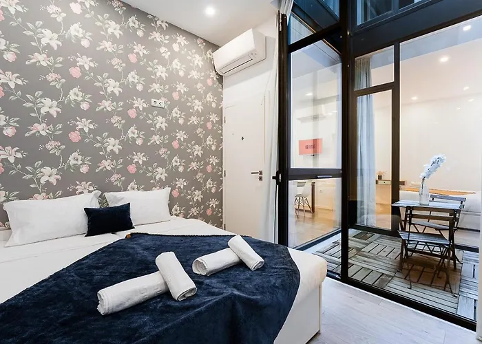 寝室1室のGuestready - Tear45 - Avenue Aveiro Apartmentはテラスがあり、Sweet Workshopから歩いてたった6分の場所に位置しています。